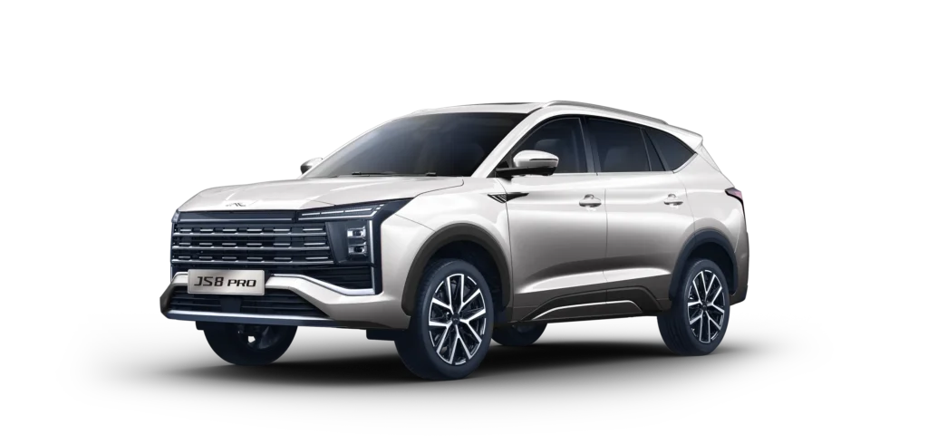 JS8 Pro to połączenie elegancji, mocy i nowoczesnego stylu. Dynamiczna sylwetka, starannie dopracowane detale i prestiżowy charakter sprawiają, że sprawdzi się zarówno jako auto rodzinne, jak i reprezentacyjny samochód firmowy.